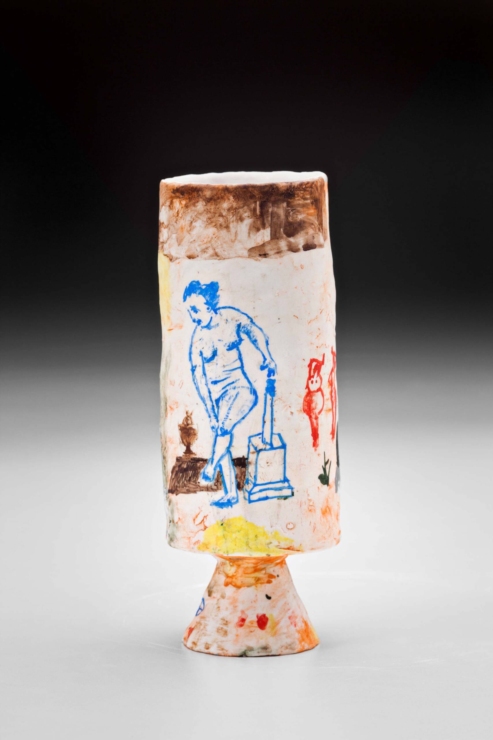 The work of Stephen Benwell encompasses ceramics, drawings, works on paper and paintings. Although he has no formal training in ceramics, this medium forms the basis of his artistic practice. His ceramics are often figurative or depict mostly figurative images on vessels. In his work, he combines the ceramic with the painterly and sculptural concerns of the contemporary artist. His works blend art-historical influences and his love for the countries of the Mediterranean region, especially Italy.
